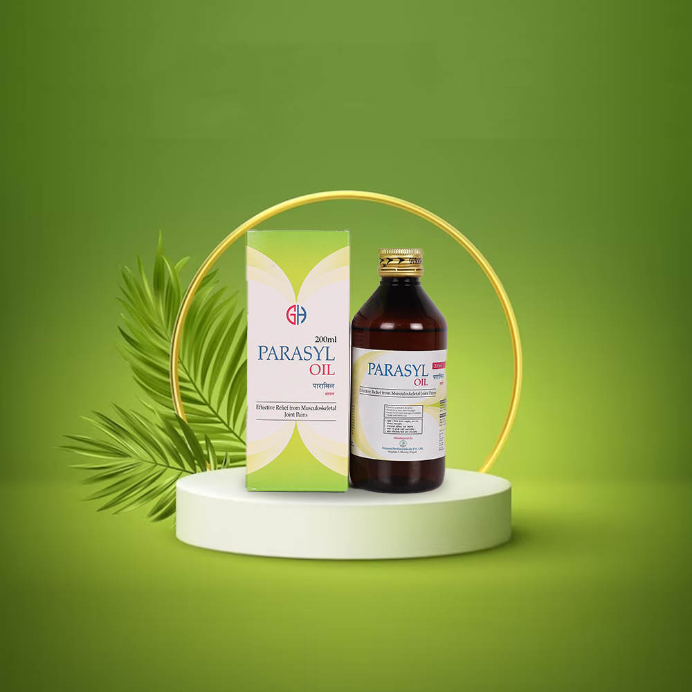 Parasyl Oil is a unique combination of time tested ayurvedic ingriedients, scientifically processed and formulated to give quick relieve from all joints pains. Also good for application in all trimester of pregnancy to relief Back Pain due to stretching of abdominal muscles. It rapidly absorbs and reliefs pain and inflammation of affected area even with less quantity. It doesnot create any stain and completely non sticky.